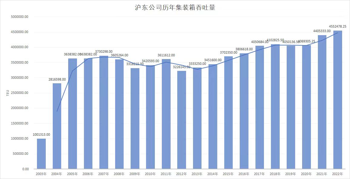 上海沪东集装箱码头有限公司成立于2002年9月12日,是上海国际港务(集团)股份有限公司与丹麦埃彼穆勒-马士基集团旗下的码头公司(APM Terminals)在中国上海共同投资组建的合资公司。两大投资方强强联手,以其先进的码头运营理念和丰富的管理经验为沪东公司注入了鲜活的生命力,同时也为公司的快速、可持续发展提供了强有力的保障。